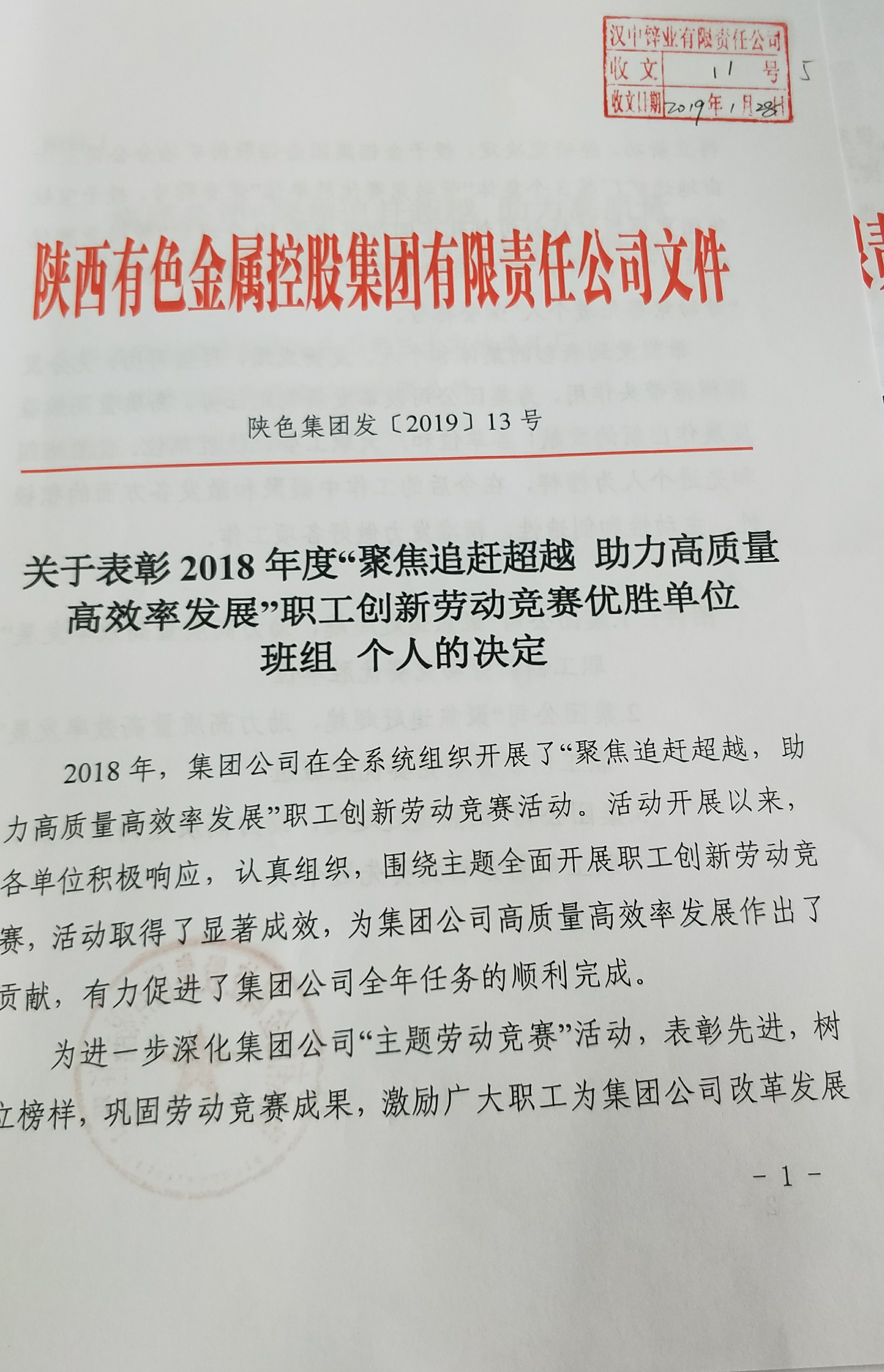 近日,集團公司印發了《關于表彰2018年度先進集體和勞動模范的決定》(陜色集團發【2019】12號)和《關于表彰2018年度“聚焦追趕超越 助力高質量高效率發展”職工創新勞動競賽優勝單位 班組 個人的決定》(陜色集團發【2019】13號),公司熔鑄車間榮獲集團公司2018年度“先進集體”榮譽稱號,電鋅二車間制液工序榮獲“2018年度聚焦追趕超越 助力高質量高效率發展職工創新勞動競賽優勝單位班組”榮譽稱號。熔鑄車間主任趙全章在1月16至17日集團公司召開的二屆二次職代會暨2019年度工作會上登臺領獎。