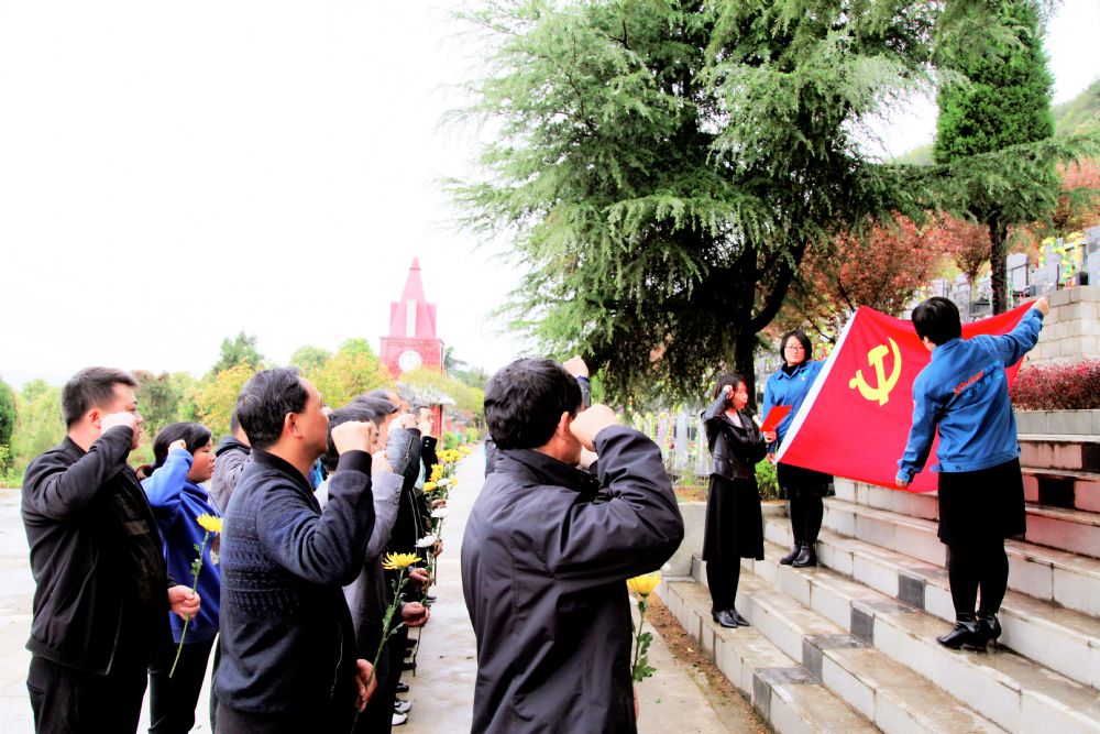 青山環繞,綠樹繁茂。大家懷著崇敬的心情,來到了莊嚴肅穆的勉縣烈士陵園,在革命烈士劉彩鳳墓前敬獻花籃、鞠躬、默哀、聆聽革命烈士事跡,大家向烈士獻花致敬!在高高聳立的烈士紀念碑前,全體黨員面對黨旗重溫了入黨誓詞,堅定理想信念,筑牢初心使命。