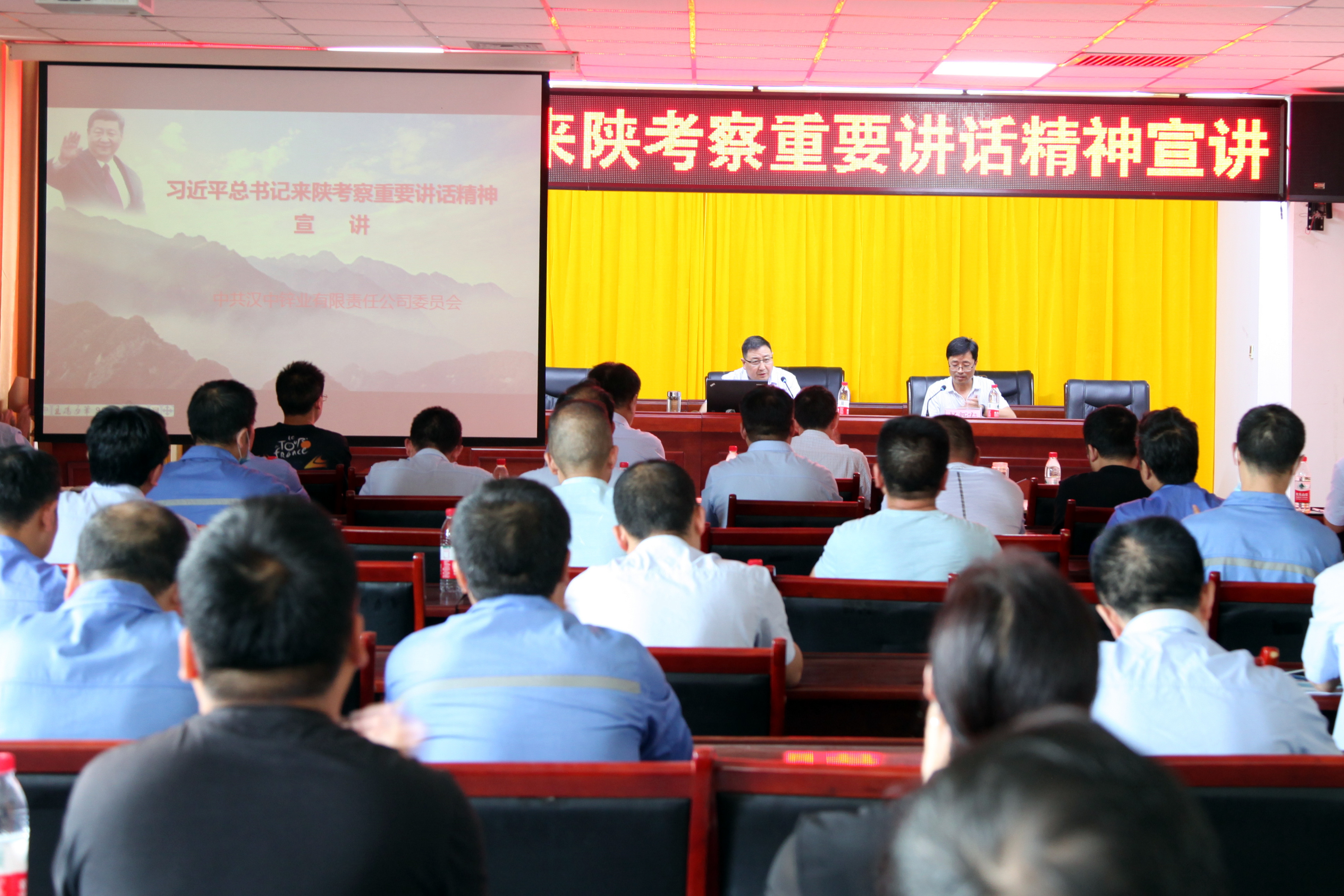 為深入學習宣傳貫徹習近平總書記來陜考察重要講話精神,進一步掀起學習宣傳貫徹的熱潮,按照相關安排,6月1日至8日漢中鋅業公司黨委書記、董事長何學斌,黨委副書記、總經理王正民,黨委副書記、紀委書記、工會主席張海潮,分別面向特材公司、公司總部行政系統、黨群系統副科級以上管理人員,習近平總書記來陜考察重要講話重要指示精神作主題宣講報告。