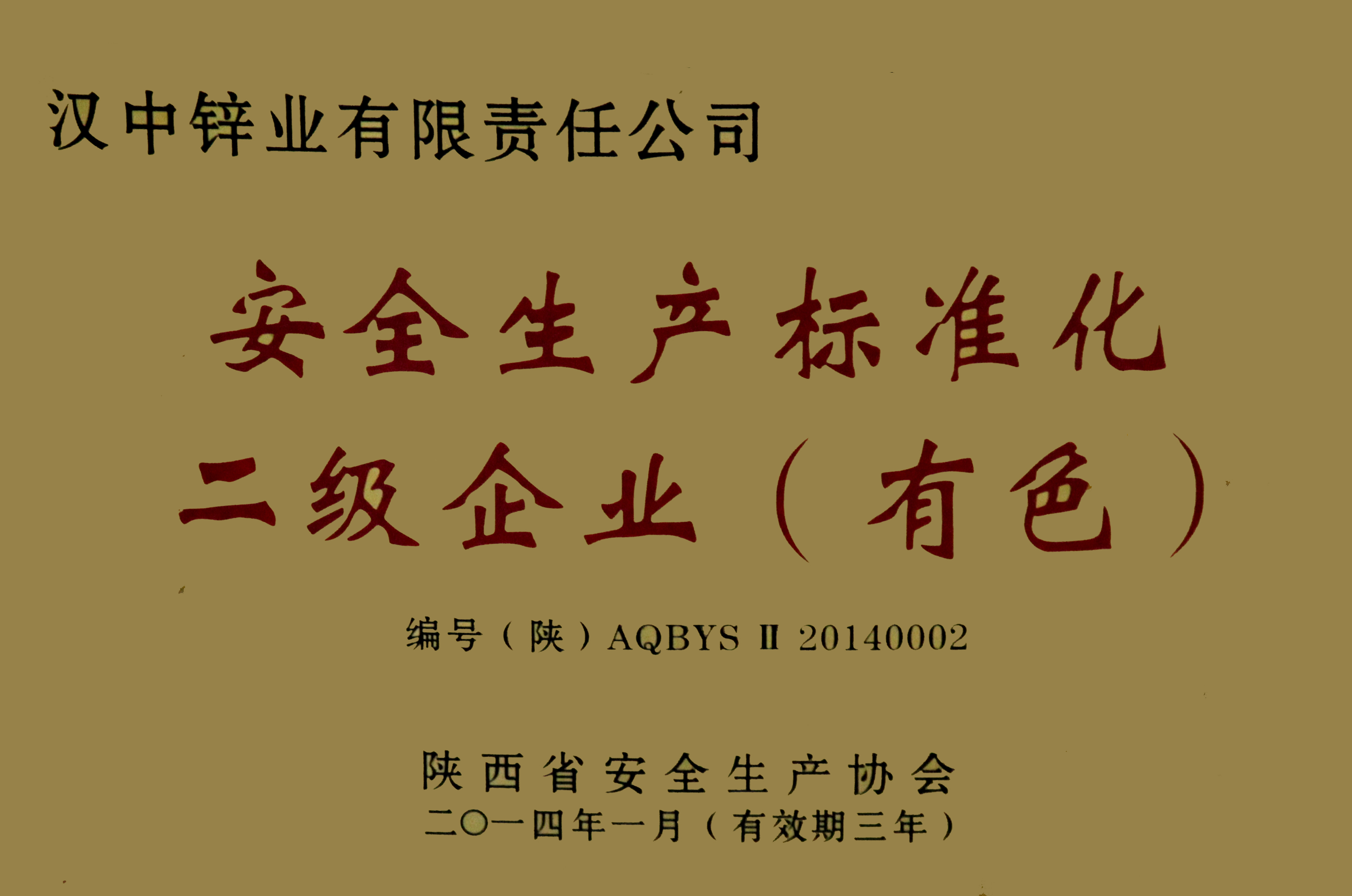 2011年1月,公司生產的BYXY牌電解鋅錠再次榮獲陜西省“名牌產品”稱號 -