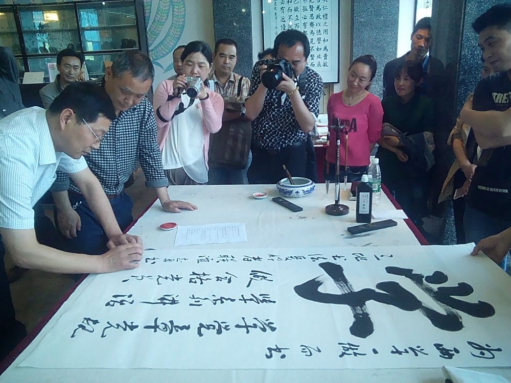 下午3點(diǎn)許,聯(lián)誼活動(dòng)正式開始了,漢中鋅業(yè)銅礦公司經(jīng)理王淵第一個(gè)閃亮登場(chǎng),以倉(cāng)勁有力的顏體楷書一氣呵成,“學(xué)黨章黨規(guī)、學(xué)系列講話,做合格黨員”一副書法作品躍然紙上,引來疊疊贊嘆聲和陣陣拍照聲。隨后,公司知名書法家劉志勇、沈華、劉文普、晏文豪等陸續(xù)閃亮登場(chǎng),特別是來自公司總部硫酸車間的書法愛好者李丹以左右手輪番揮毫的特色,引來一片贊嘆聲。大家磨拳擦掌,紛紛登臺(tái)亮相,都以公司正在開展的“兩學(xué)一做”學(xué)習(xí)教育活動(dòng)等相關(guān)內(nèi)容為主要書寫題材。或一筆一畫,從容自如;或龍騰虎妖,蕩氣回腸;或蜻蜓點(diǎn)水,溫文爾雅;或筆走龍蛇,曲折蜿蜒;或左手揮毫,別具特色……“三嚴(yán)三實(shí)”“信念堅(jiān)定、為民服務(wù)、勤政務(wù)實(shí)、敢于擔(dān)當(dāng)、清正廉潔”“四講四有”“基礎(chǔ)在學(xué)、關(guān)鍵在做”“讓資源更有價(jià)值”“愛我中華,興我鋅業(yè)”等這些文字都被公司“書法家”們變成了一幅幅各具特色的書法作品,這些生動(dòng)活潑的作品,剛蓋完作者的印章,就被現(xiàn)場(chǎng)的幾位支部書記哄搶一空,他們琢磨著要把這些作品裝裱后掛在黨員活動(dòng)室,供大家學(xué)習(xí)、觀賞。